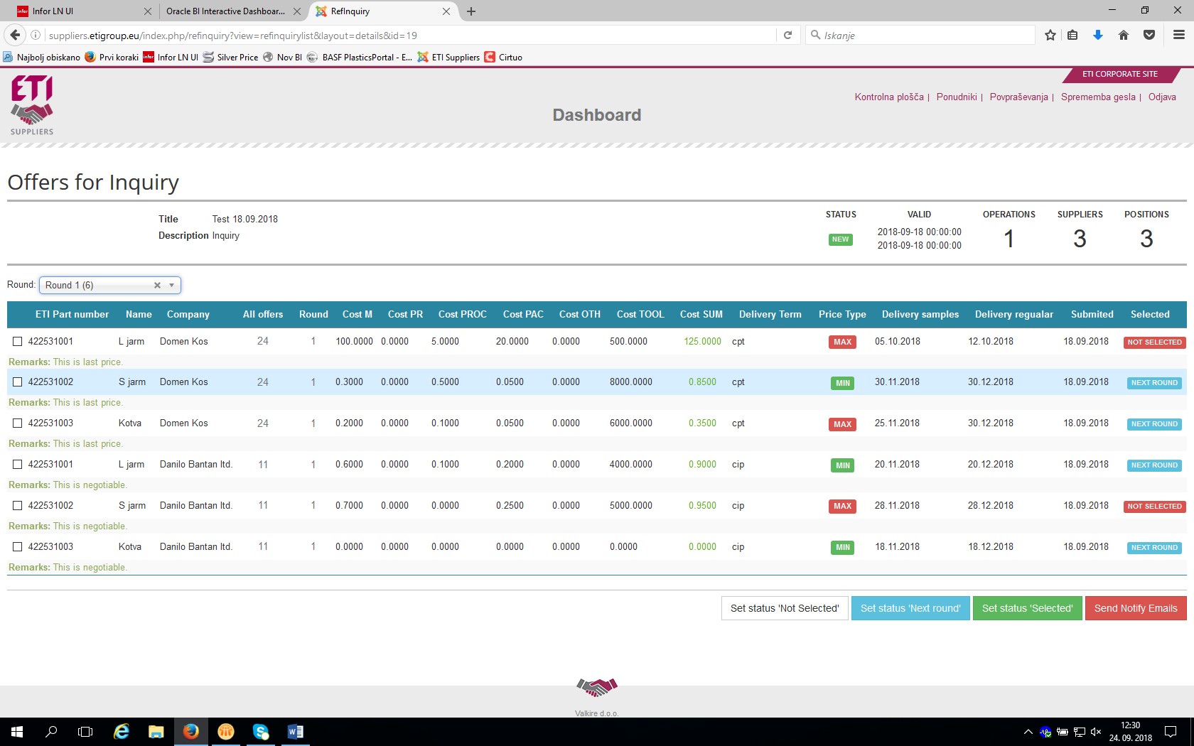 Our new web portal represents an easy and efficient way for suppliers, who wish to become our partner, to post their offers. By registering as our potential supplier, you will regularly receive all our inquiries. Inside the portal, you will have access to all of your bidding history in one place, you will be able to monitor our stock of your products daily and have insight into planned procurement orders for the next four months.