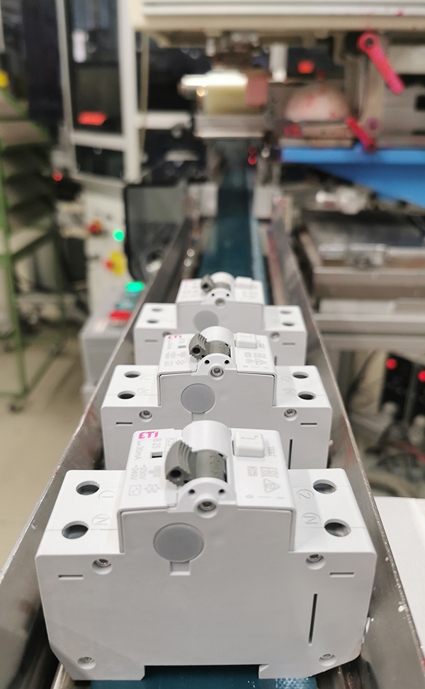 KZS-2M RCBOs on the output conveyor belt of the device